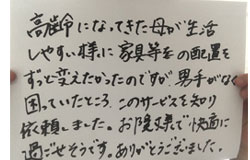 2018/7/3ご依頼埼玉県 A様 作業時間3時間 主に家具数点移動 ご利用ありがとうございました。 |